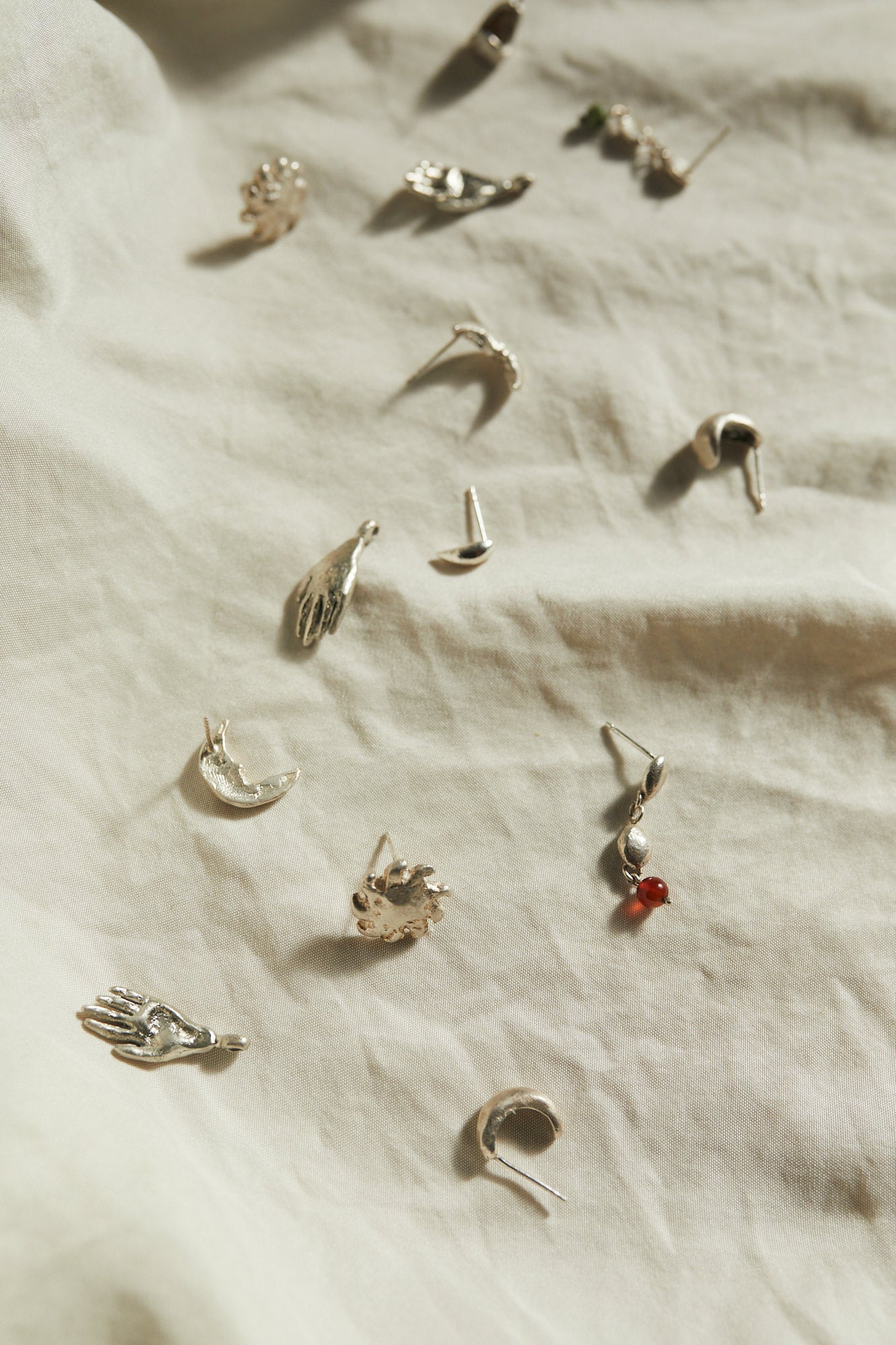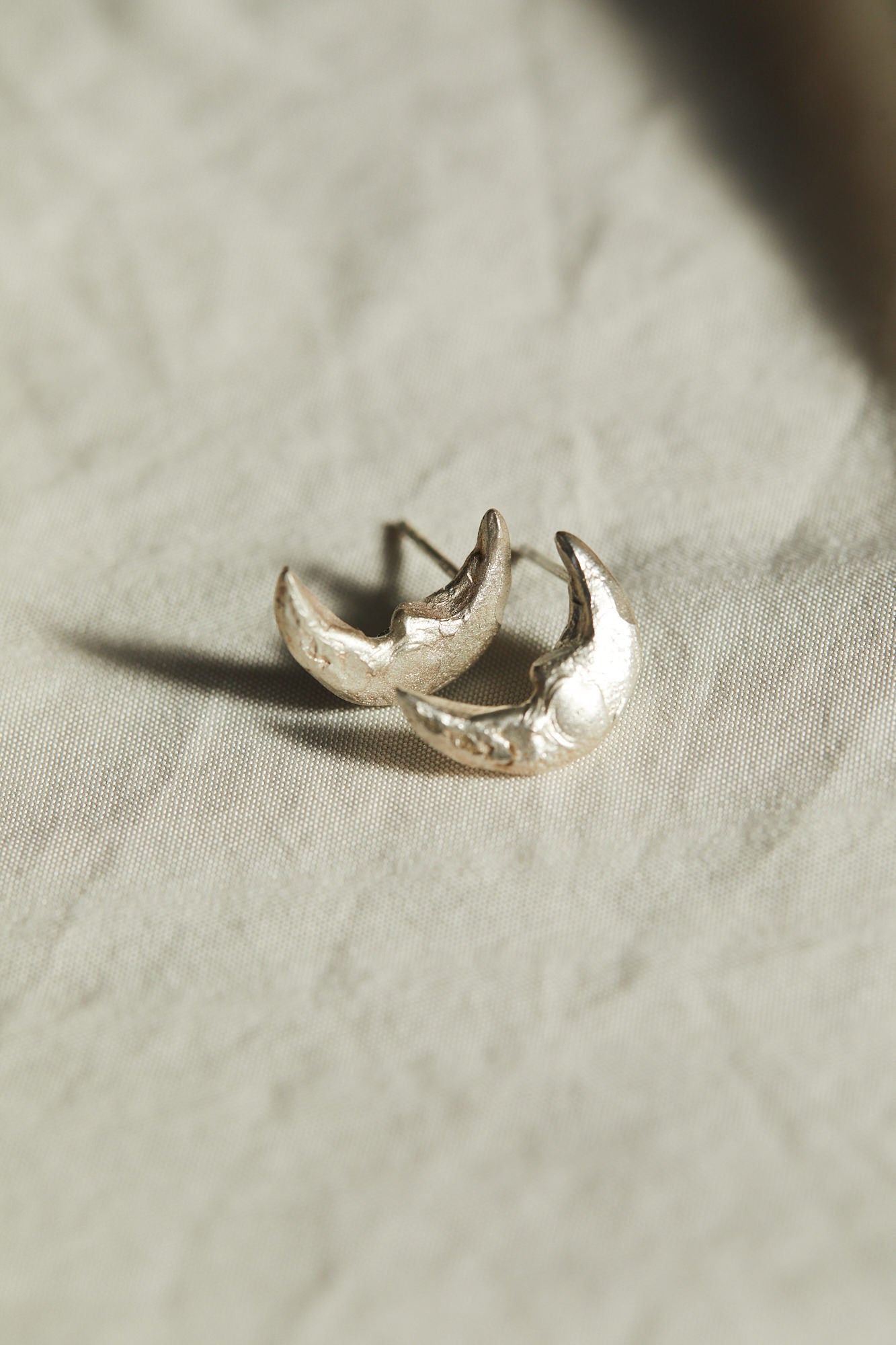 Sculpted first in soft beeswax, these crescent earrings carry the imprint of touch — each curve formed slowly, with presence and care.